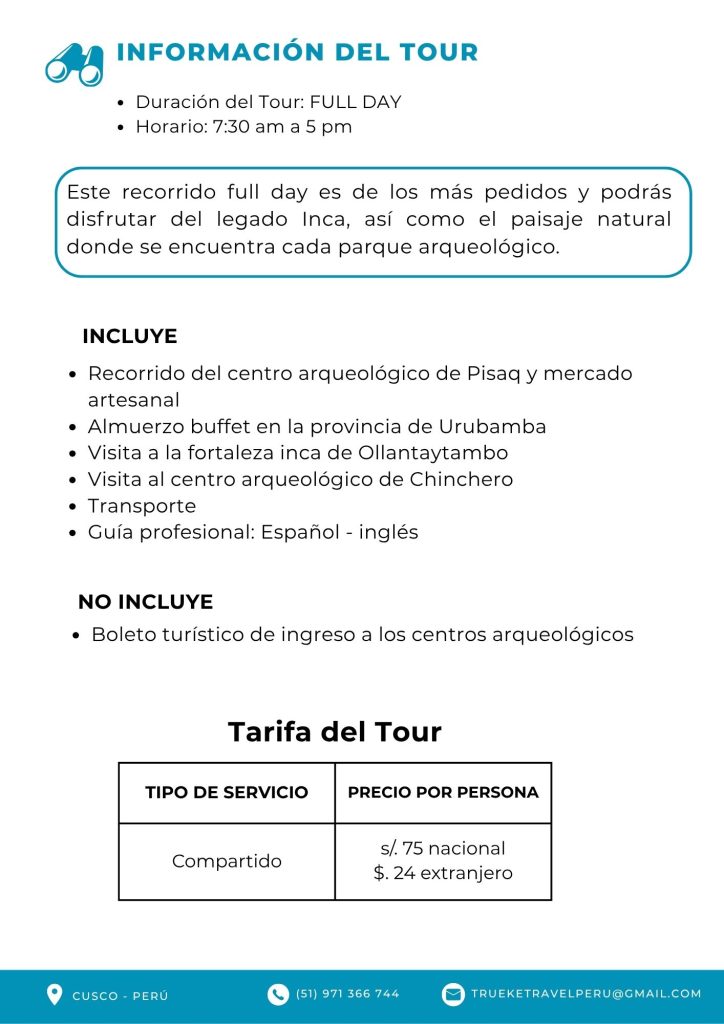 - Recorrido del centro arqueológico de Pisaq y mercado artesanal